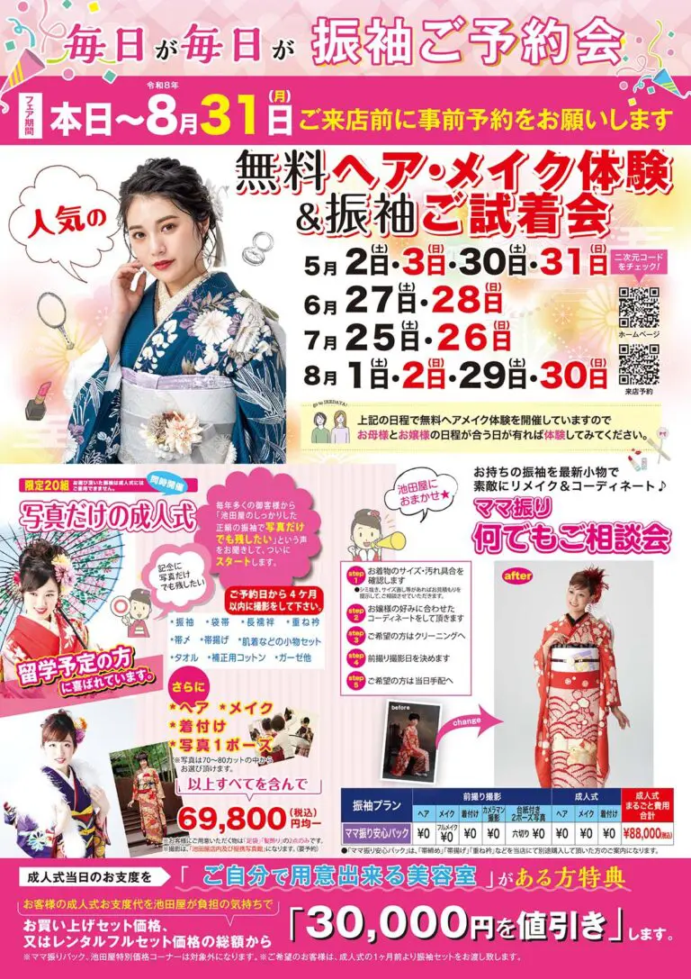 池田屋人気の「無料ヘアメイク体験」予約受付中